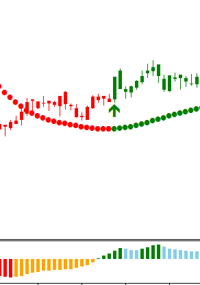 The Red and Blue Dot Line is a Trend Indicator.