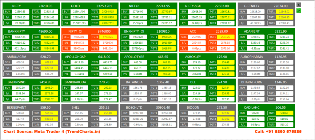 • Buy / Sell, TGT 1, TGT 2, TGT3,